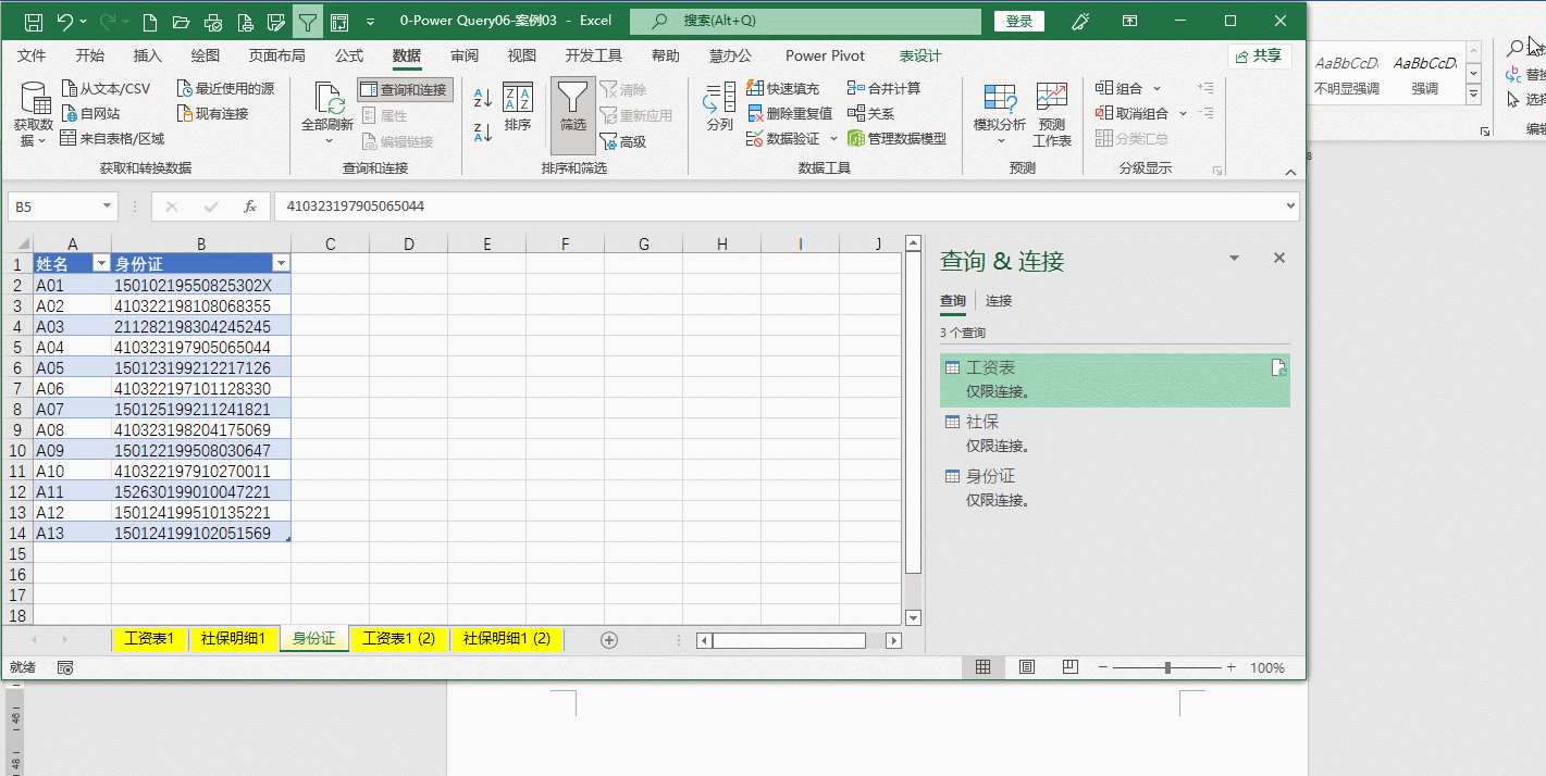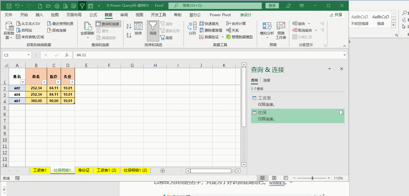 导入方式和前面的一样,关闭并上载至今连接后也可以修改这个查询的名字,我们修改为“社保”,动图二。