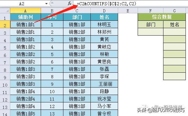 这样做的目的是让A列是保持唯一的,将每个部门后面加上了累计出现的次数
