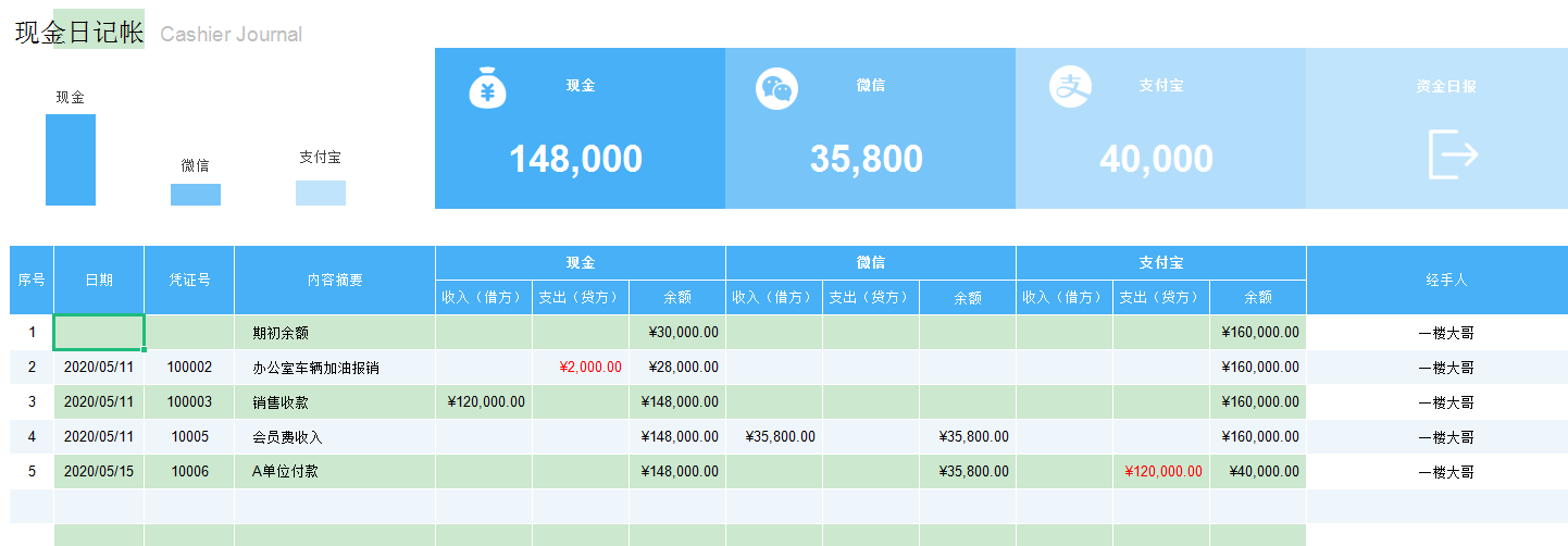 本系统包含现金记录、银行记录、自动生成现金日报、自动生成现金盘点表、一键打印往来对帐函等功能;
