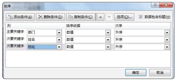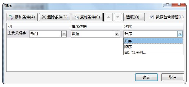 排序有升序、降序、自定义排序,可以设置多个关键字,如果设置多个关键字排序,按照关键字的次序来排序,如图2-6-1和图2-6-2所示。