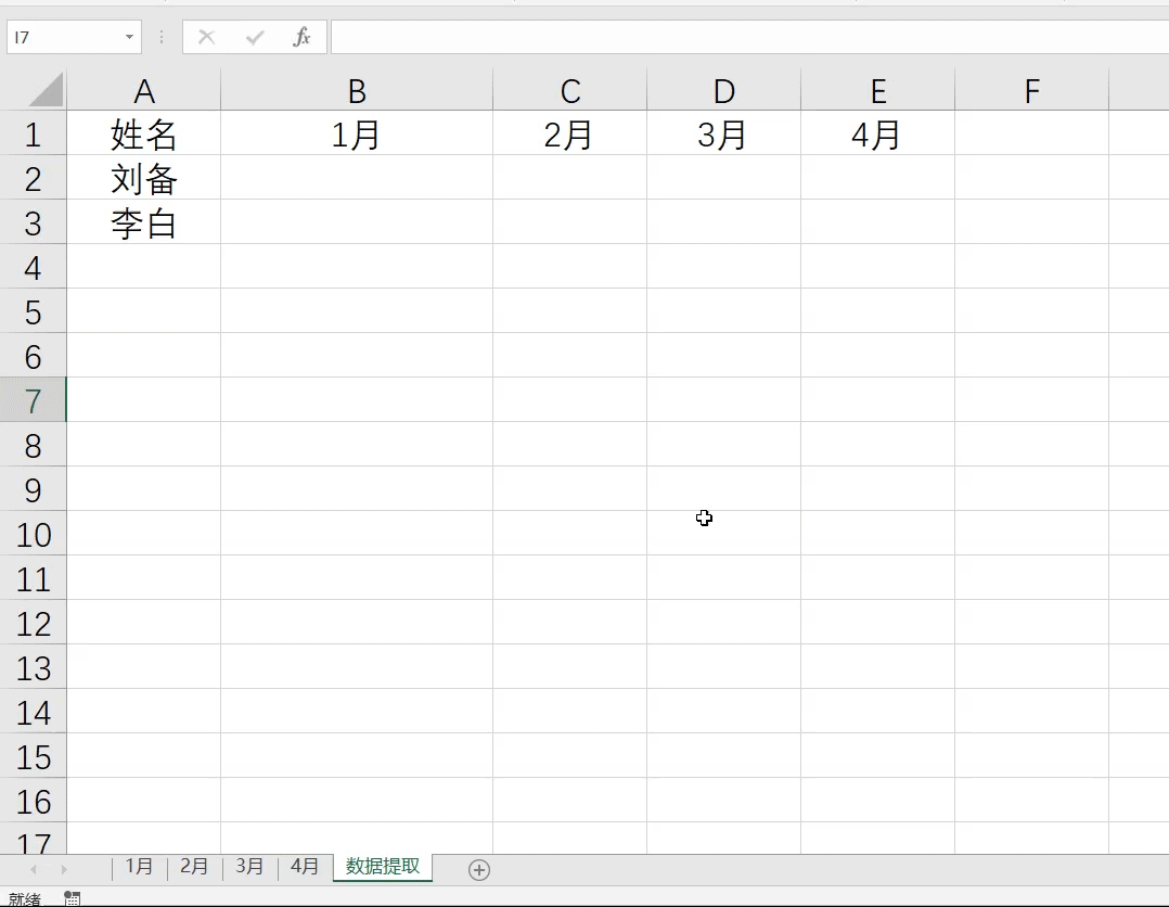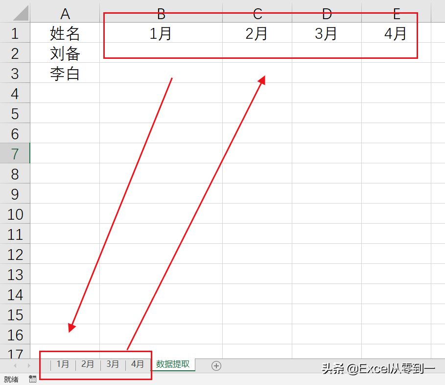 达到提取多个表格数据的效果主要是因为函数的第二参数,在这里INDIRECT(B$1&"!A:B")中的B1就是1月,函数的结果为1月!A:B,这个就代表1月表格中的a列和b列的数据区域,当我们向右拖动的时候函数就会变为INDIRECT(C$1&"!A:B"),在这里c1是2月,函数的结果变为2月!A:B,这个就代表2月表格中的a列和b列的数据区域,以此类推当我们拖动数据就会改变为相应表格的A到B列这个数据区域,所以才能提取多个表格数据