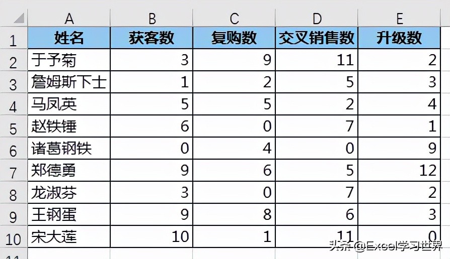 下图 1 是各销售人员的各项业绩表。请根据要求计算出指定业绩的总和,效果如下图 2 所示。