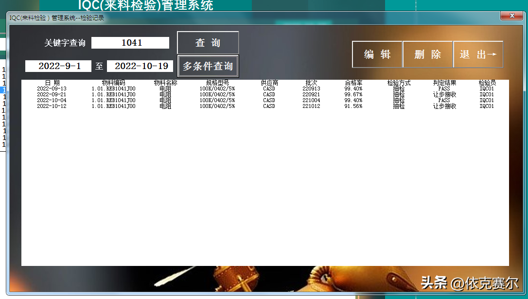 3.1 检验记录查询:检验记录可根据关键字查询,也可根据关键字和日期区间多条件查询。