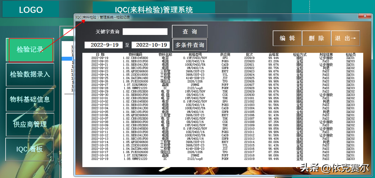 IQC 管理系统2.0:本期分享的作品在1.0的基础上变更了以下3点内容: