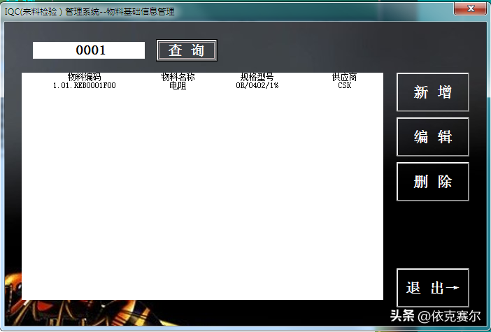 5、供应商管理:在主界面点击“供应商管理”按钮,可打开供应商管理的窗口。供应商管理的新增、编辑、删除的使用功能与物料基础信息的一样,这里不做详细介绍。