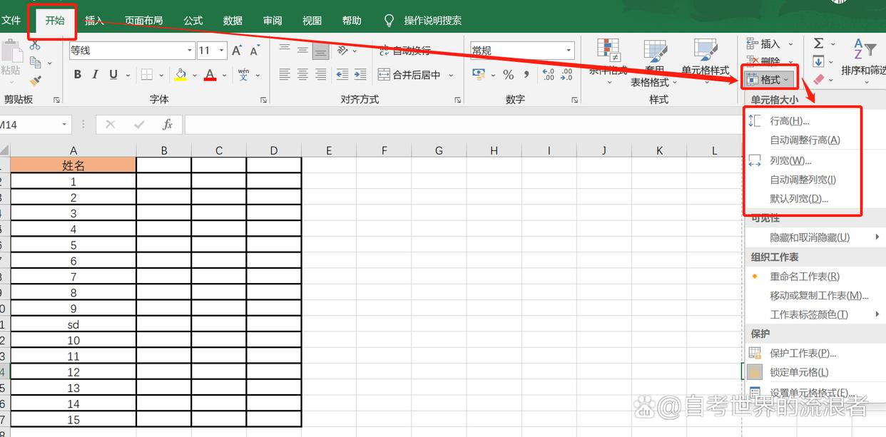 首先我们需要打开一份表格,点击开始时,在右边有个格式的选择,点击选中格式会看到可以调整单元格大小,随意挑选行高