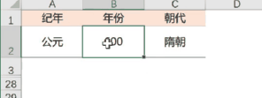 设计表头纪年、年代、朝代;纪年输入框位置B2单元格通过数据验证(或数据有效性)-序列,设计下拉菜单公元前、公元;年份位置C2单元格为自主输入区域,设置为格式为常规就可以了。