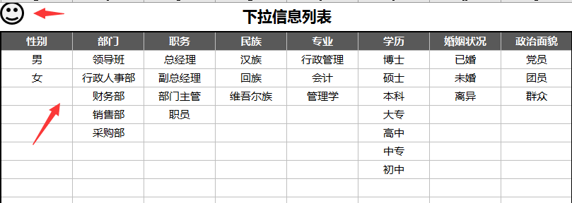 先根据项目设置好基础信息,以后表格中方便函数统计,单元格下拉菜单选择。