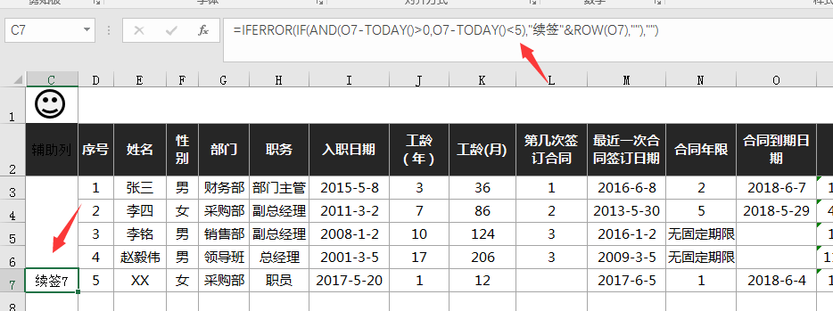 续签合同提醒:自动生成5天内合同即将到期的员工的信息,无需录入任何内容。