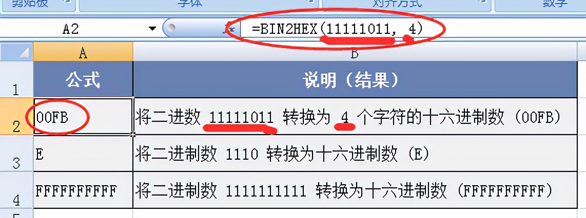 - 如果 BIN2HEX 需要比 places 指定的更多的位数,将返回错误值 #NUM!。