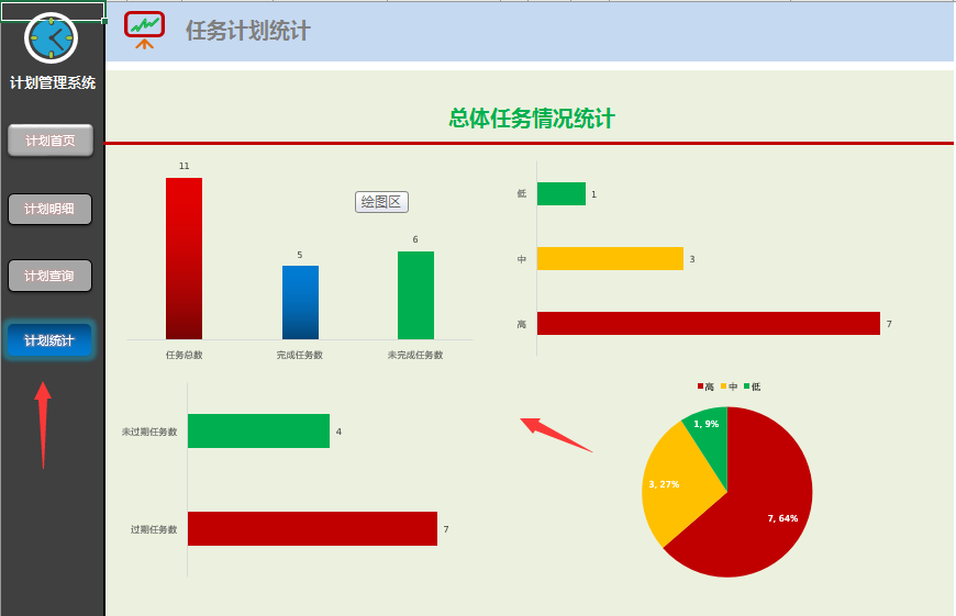 任务计划统计表为全自动,无需操作,自动生成图表,直观查阅。本表格函数区域,隐藏工作表不要删改,公式不够复制即可,希望大家都能GET到。