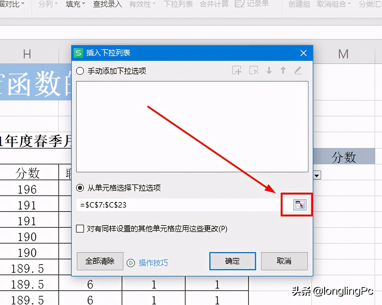 在下拉列表中,把学生姓名作为数据源,选中然后确定,这样我们就创建了以学生姓名作为条件的下拉列表。