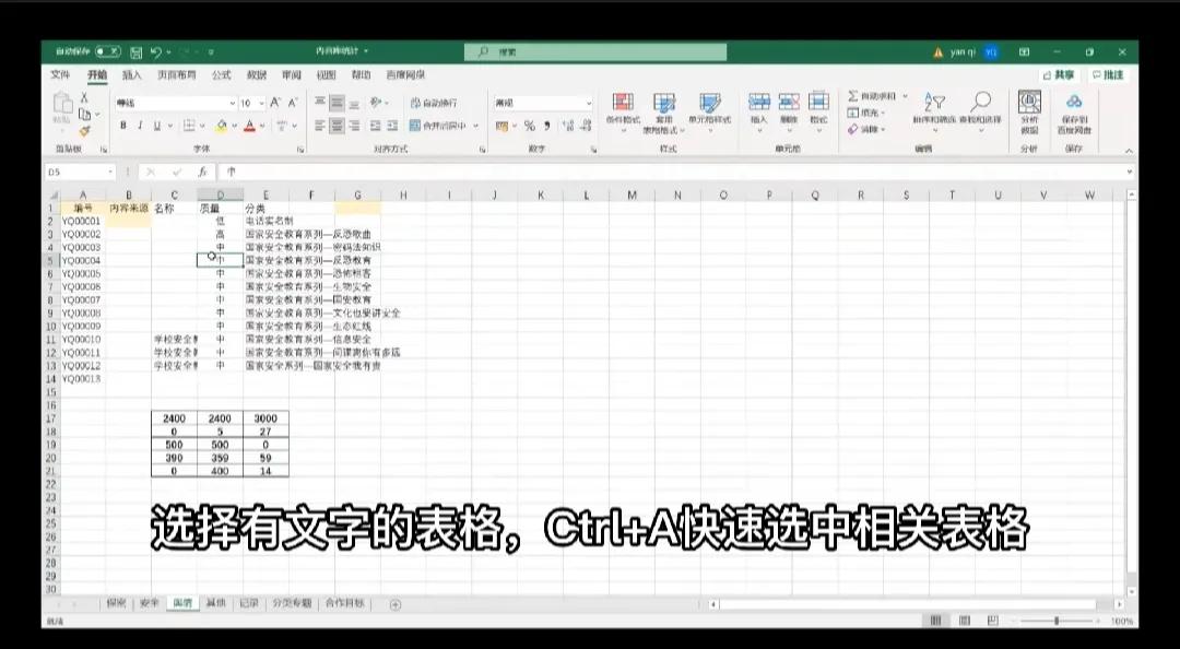 2.Ctrl+A快速选中表格(word中Ctrl+A也是全选操作)
