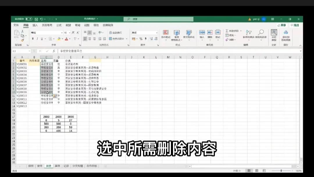 选中需要删除内容的单元格