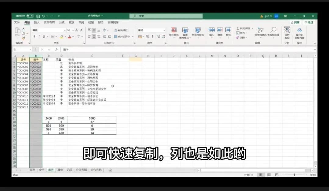 将鼠标光标置于两列交线,按住Ctrl键,拖动,即可快速复制,行也是同理呀~