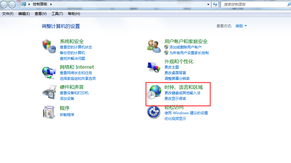 第一步、打开电脑的控制面版,点击时钟、语音和区域