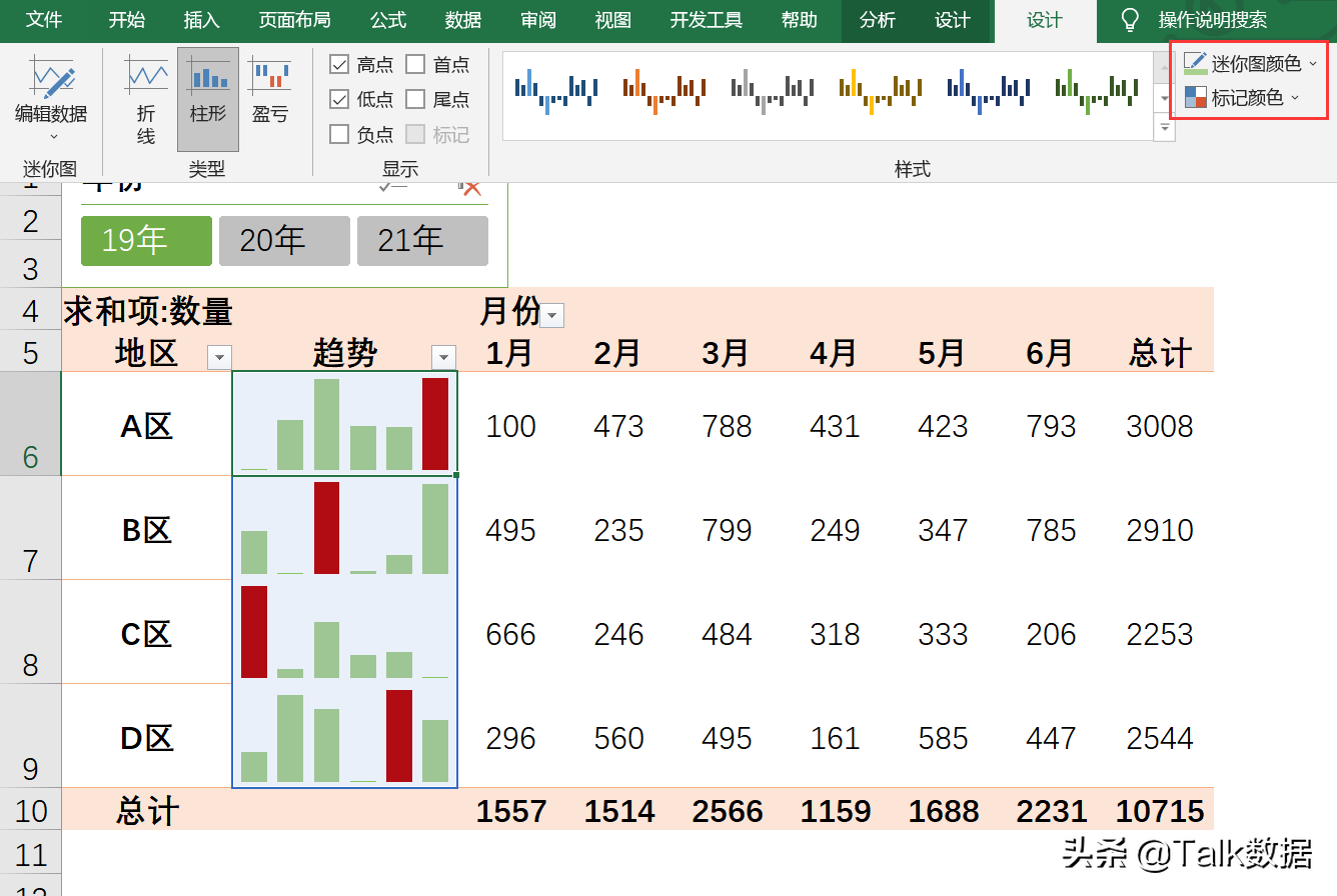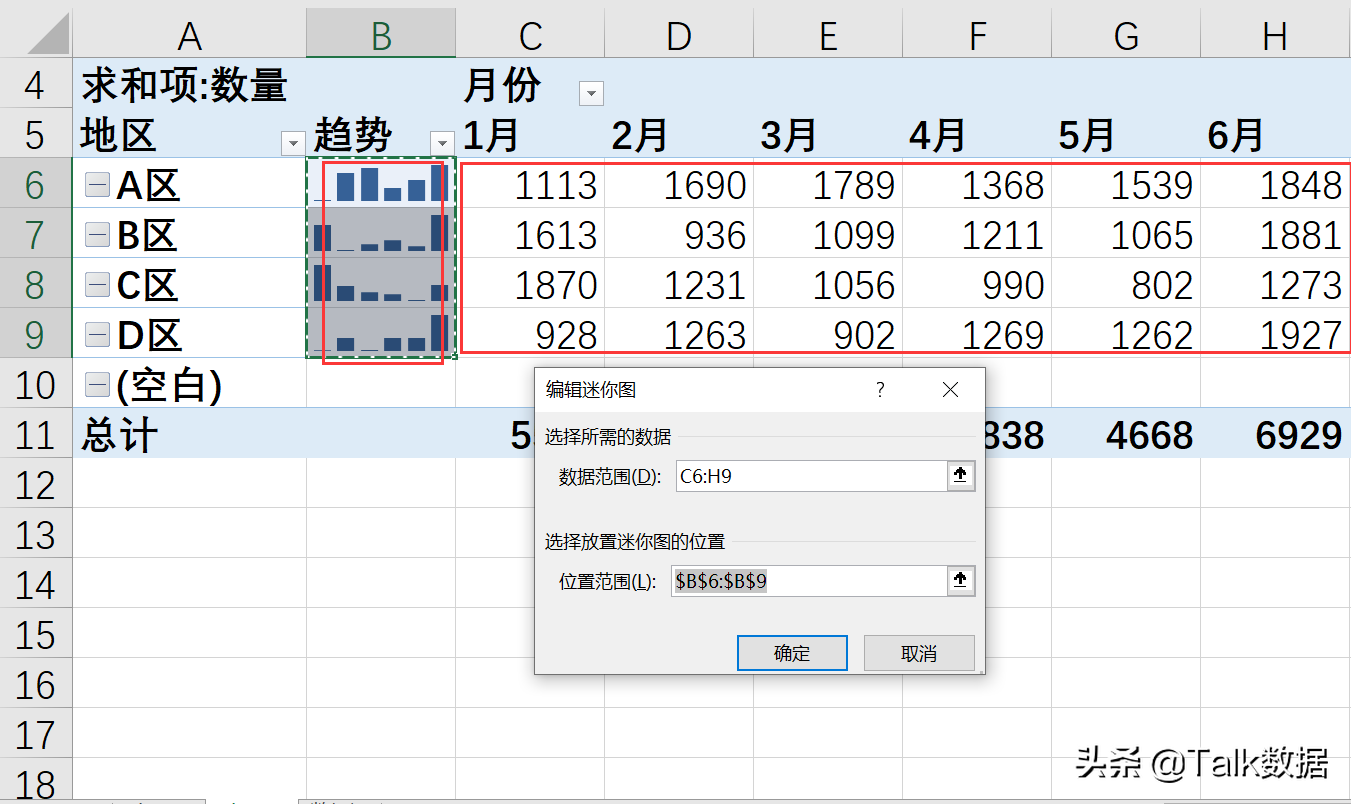 按照上述操作完成后,一张含有迷你图的动态图表便闪亮登场。