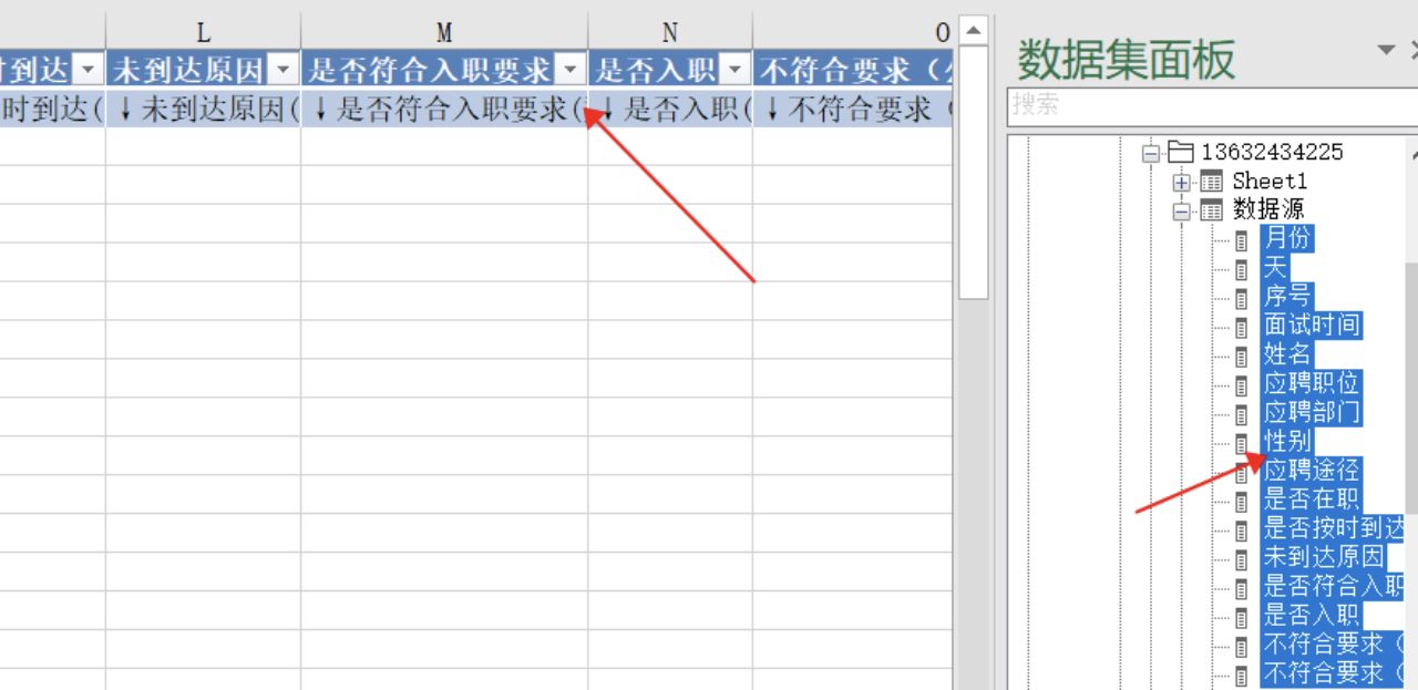 要解决这个问题,我们可以考虑把数据源导进数据库里进行分析,那么什么数据库比较合适呢?这里只要下载一个电子表格软件(Smartbi Spreadsheet),安装后它会作为一个插件在excel中呈现,此时只要打开excel,把数据源导入电子表格软件,便可以在右边的数据集面板里去拉取相应的数据字段到EXCEL里去进行分析了。