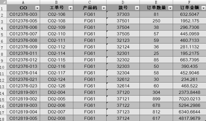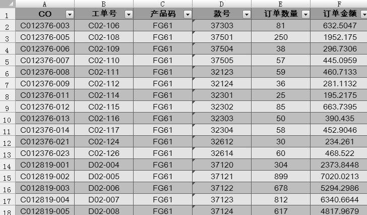 设置完成后的“表”自动套用了相应的表格样式,如图所示