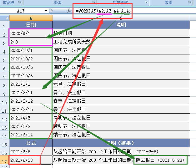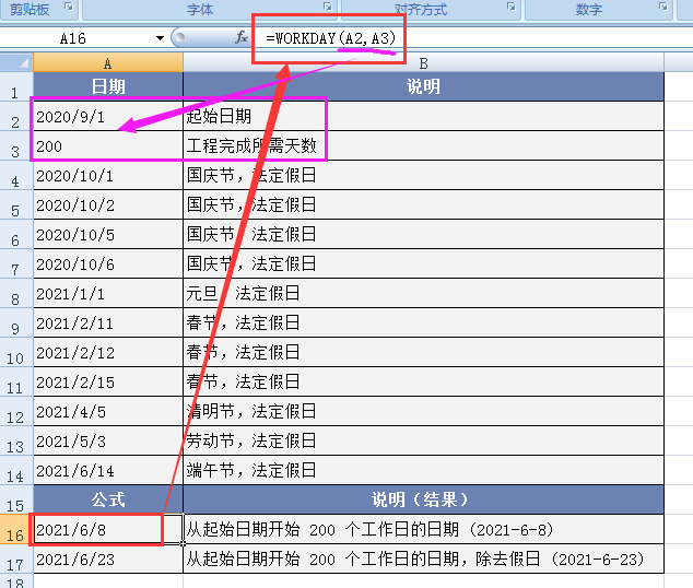 返回某日期(起始日期)之前或之后相隔指定工作日的某一日期的日期值。工作日不包括周末和法定的假日。在计算发票到期日、预期交货时间或工作天数时,可以使用函数 WORKDAY 来扣除周末或法定假日。