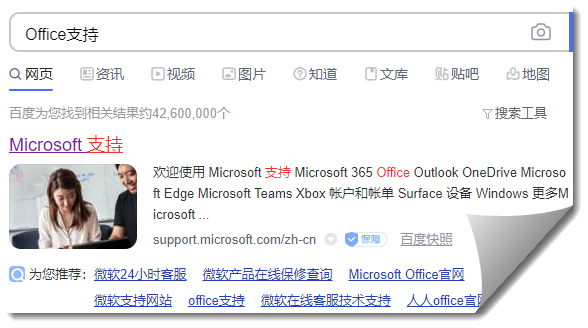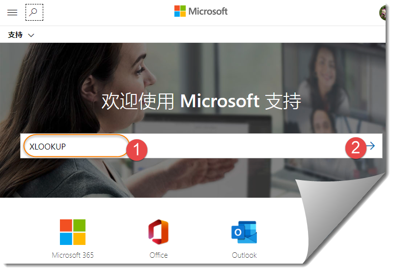 下面这个页面就是微软支持了,在搜索框中输入关键字,按下回车或是单击右侧的小箭头→,就可以看到帮助内容了。