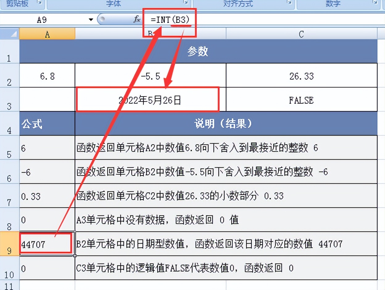 数学和三角之INT函数