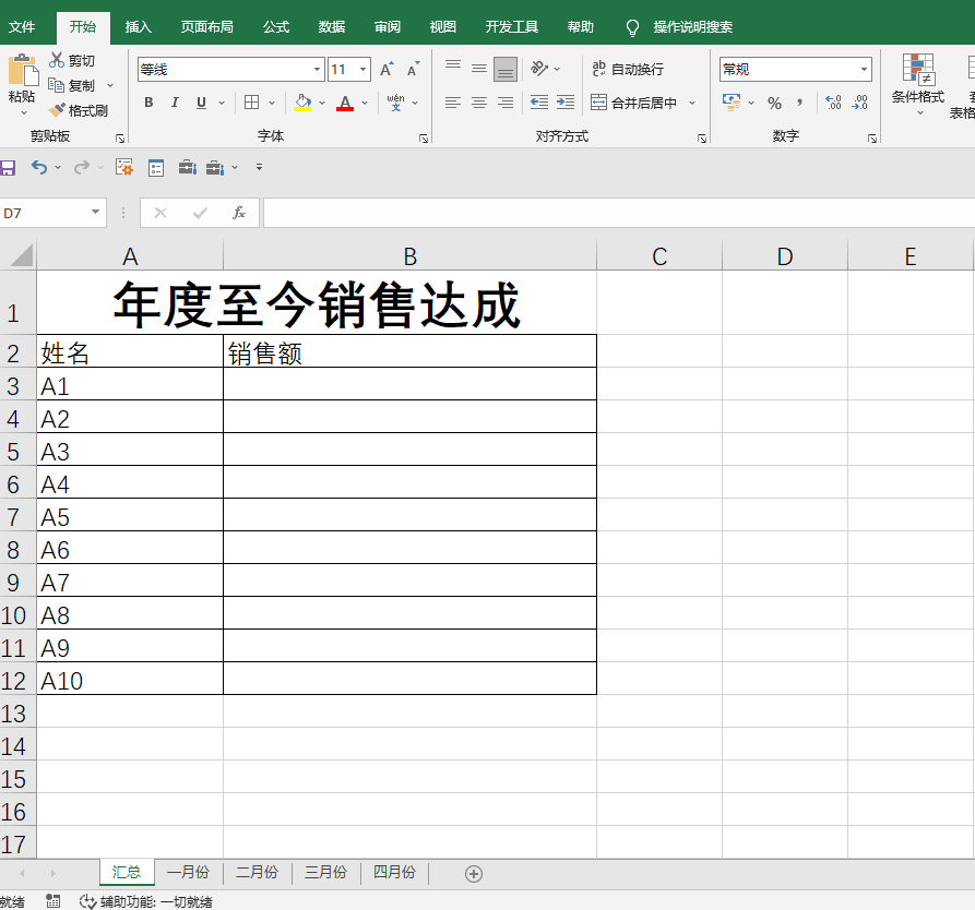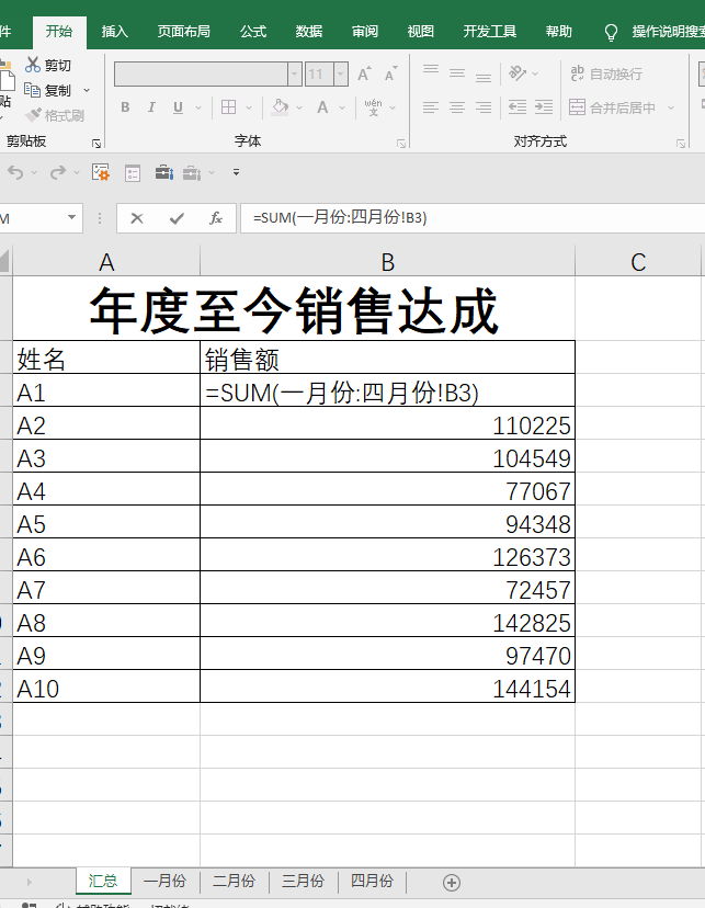 =SUM(一月份:四月份!B3)