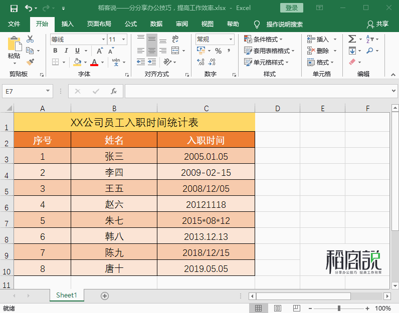 在日常工作中,有时在收集一个由多人填写的表格时,由于填表人的习惯不同,导致填写的日期格式也不相同,汇总后的日期列表会显得杂乱无章,既影响美观且无法用于运算,所以统一规范日期格式非常有必要。