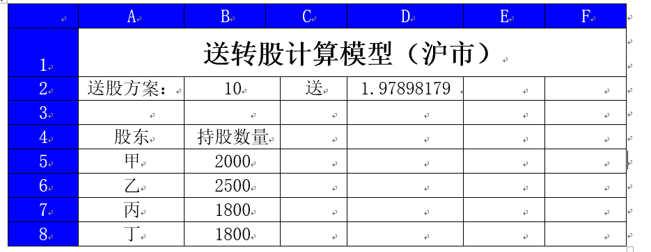 针对以上分析,笔者将运用EXCEL构建送转股计算模型。