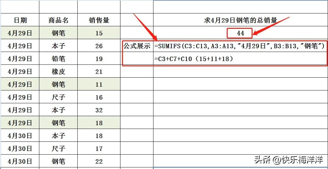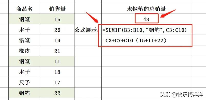 求和区域:用于求和计算的实际单元格,销售量区域C3:C13