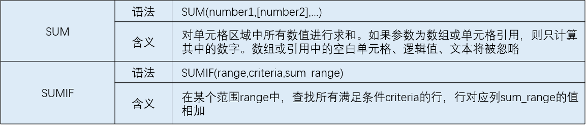 SUMIF函数负责分条件求和,SUM函数负责对SUMIF返回的结果求和。