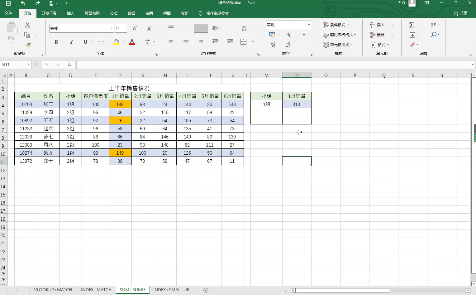 2个函数组合在一起的效果:SUMIF函数可以进行单条件、多条件分别求和,结果返回的是数组,配合SUM函数,将返回数组中的数据再求和,就实现了单条件、多条件求和。