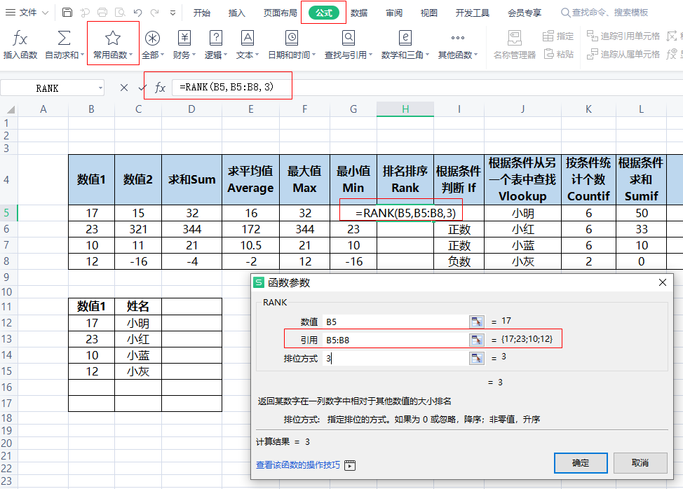 函数 RANK 对重复数的排位相同。但重复数的存在将影响后续数值的排位。