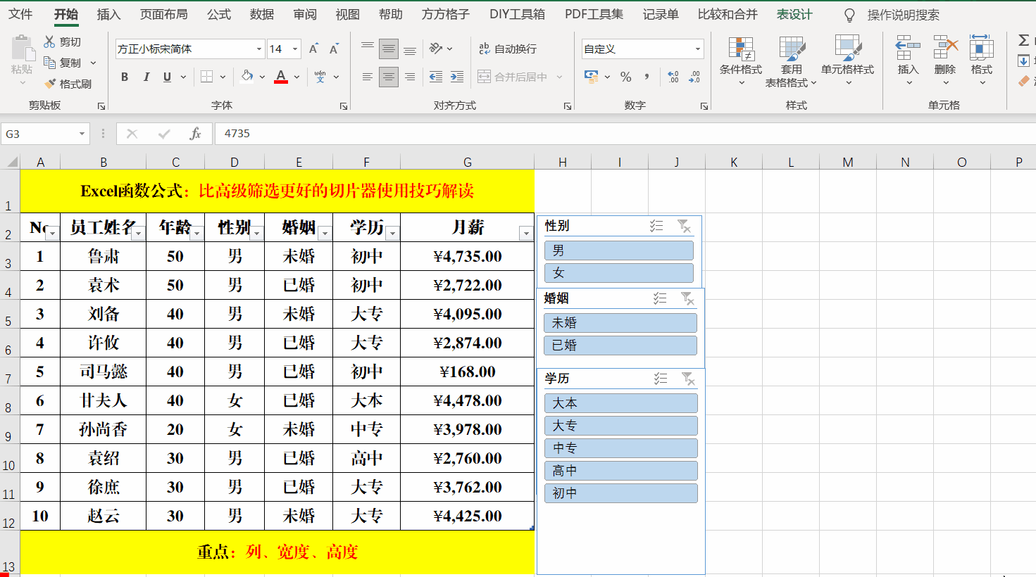 关于筛选和高级筛选,小编在前期的文章中已经详细地解读过,相对于普通筛选,高级筛选的功能已经非常的强大,使用起来也非常的方面,但与今天要给大家汇报的内容相比,还是显得有点儿逊色。这个功能就是Excel系统中的切片器,使用起来并不像筛选或高级筛选那样麻烦,Excel切片器可以直接生成多个按钮,只需要点击,就可以得到我们想要的结果。