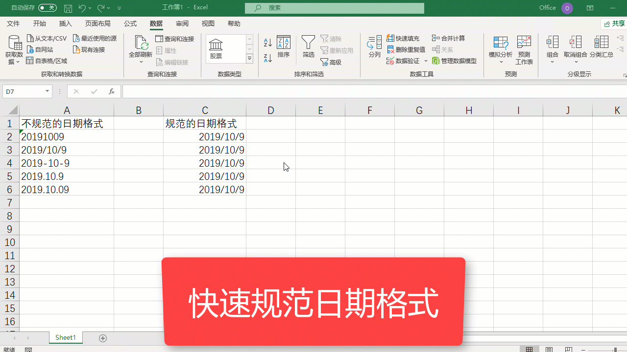 规范不统一的数据格式,可以用“分列”功能来实现。
