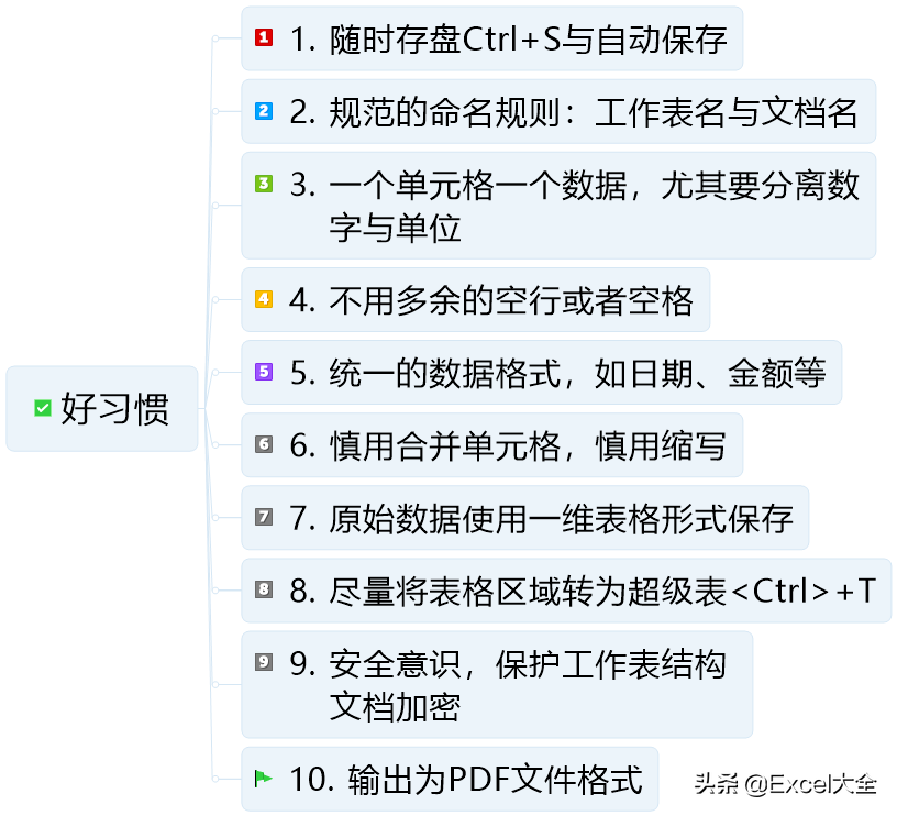 此节,整理了10个Excel的好习惯,欢迎补充!