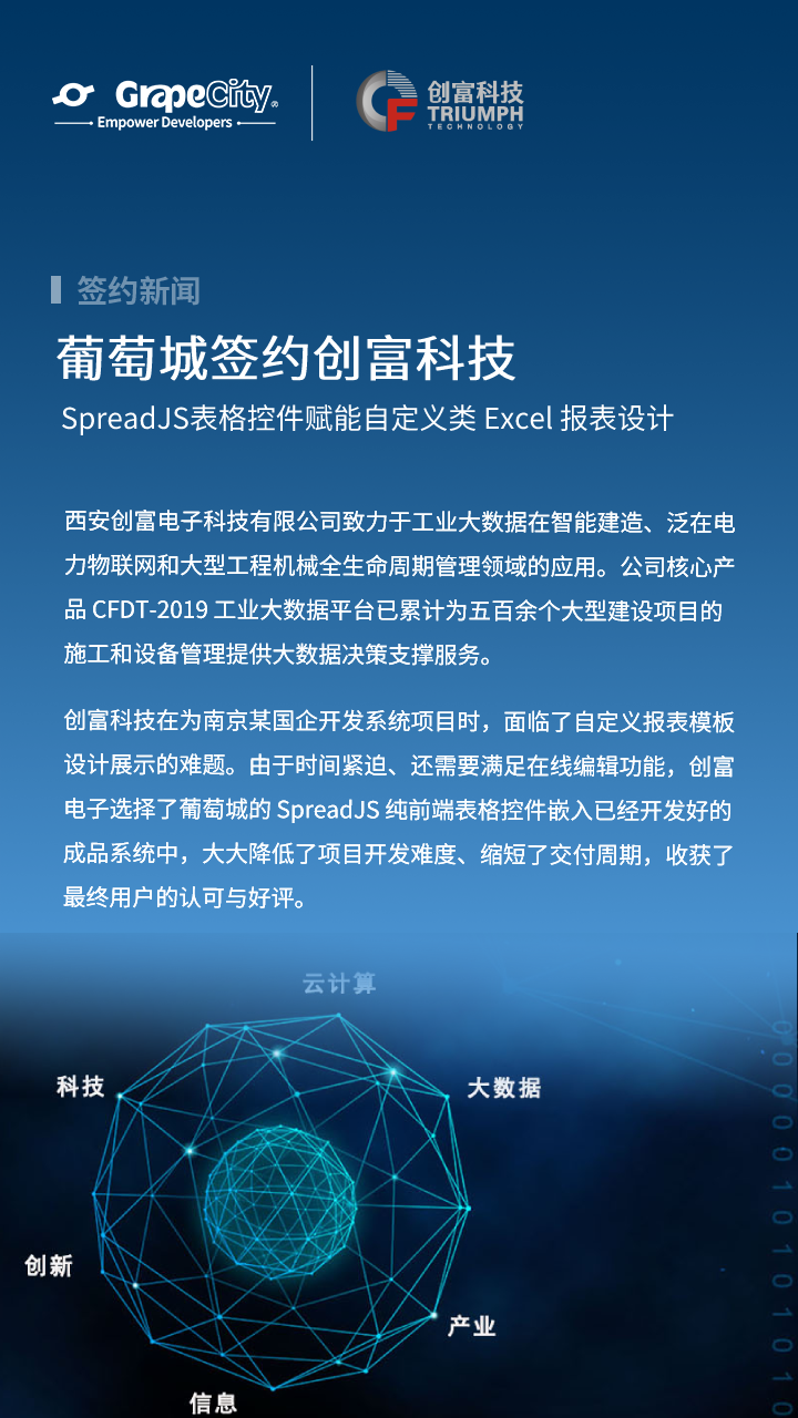 近日,西安创富电子科技有限公司(简称:创富科技)在为南京某国企开发应用系统项目时,遇到自定义报表模板设计展示的难题,同时报表还需满足在线编辑功能。时间紧、难度大,面对如此困境,创富电子选择将葡萄城的SpreadJS纯前端表格控件嵌入现有成品系统中,不仅降低了项目交付难度、缩短了交付周期,还因为快速响应力得到最终用户的认可与好评。