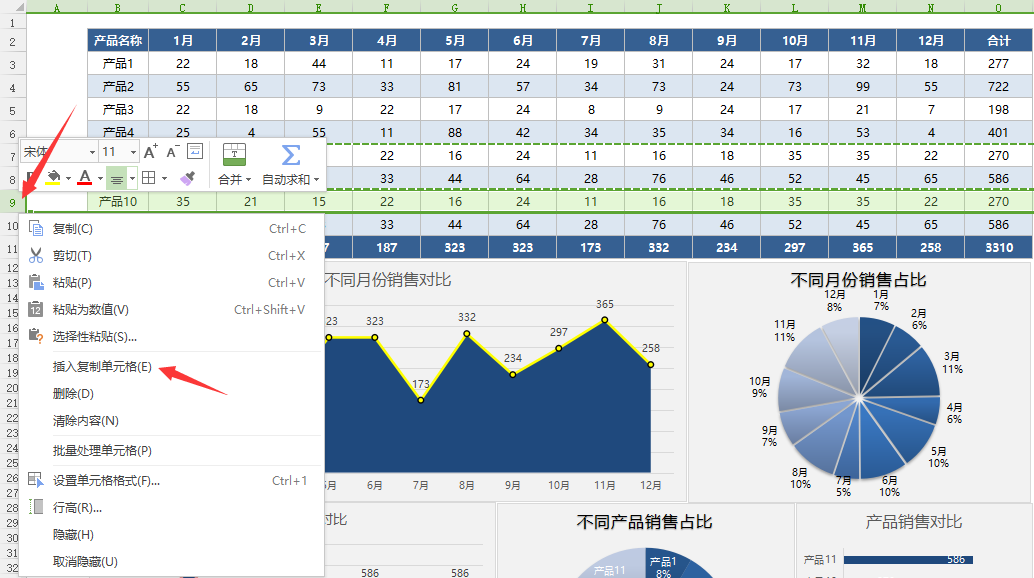 メ如果大家要添加产品项目,直接复制多行,插入复制单元格。メ