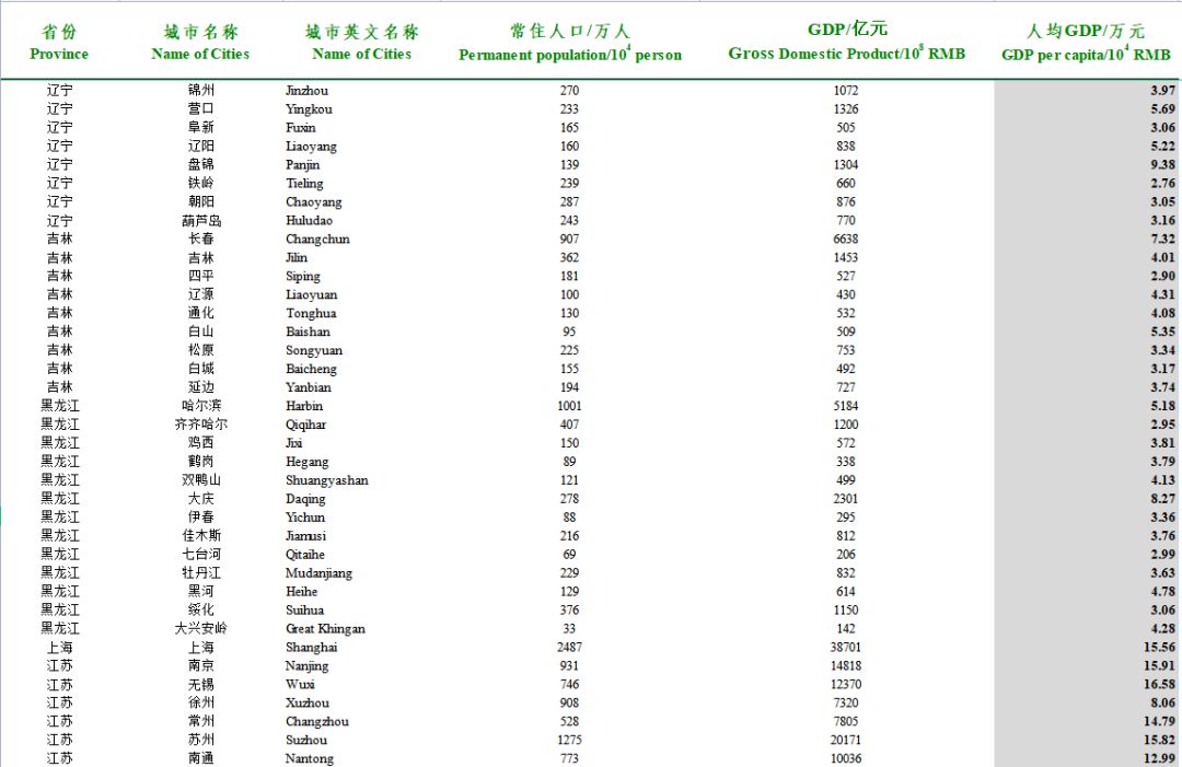除了二氧化碳排放数据以外,该数据集还分享有与二氧化碳排放有关的社会经济数据,指标包括:常住人口、GDP和人均GDP。