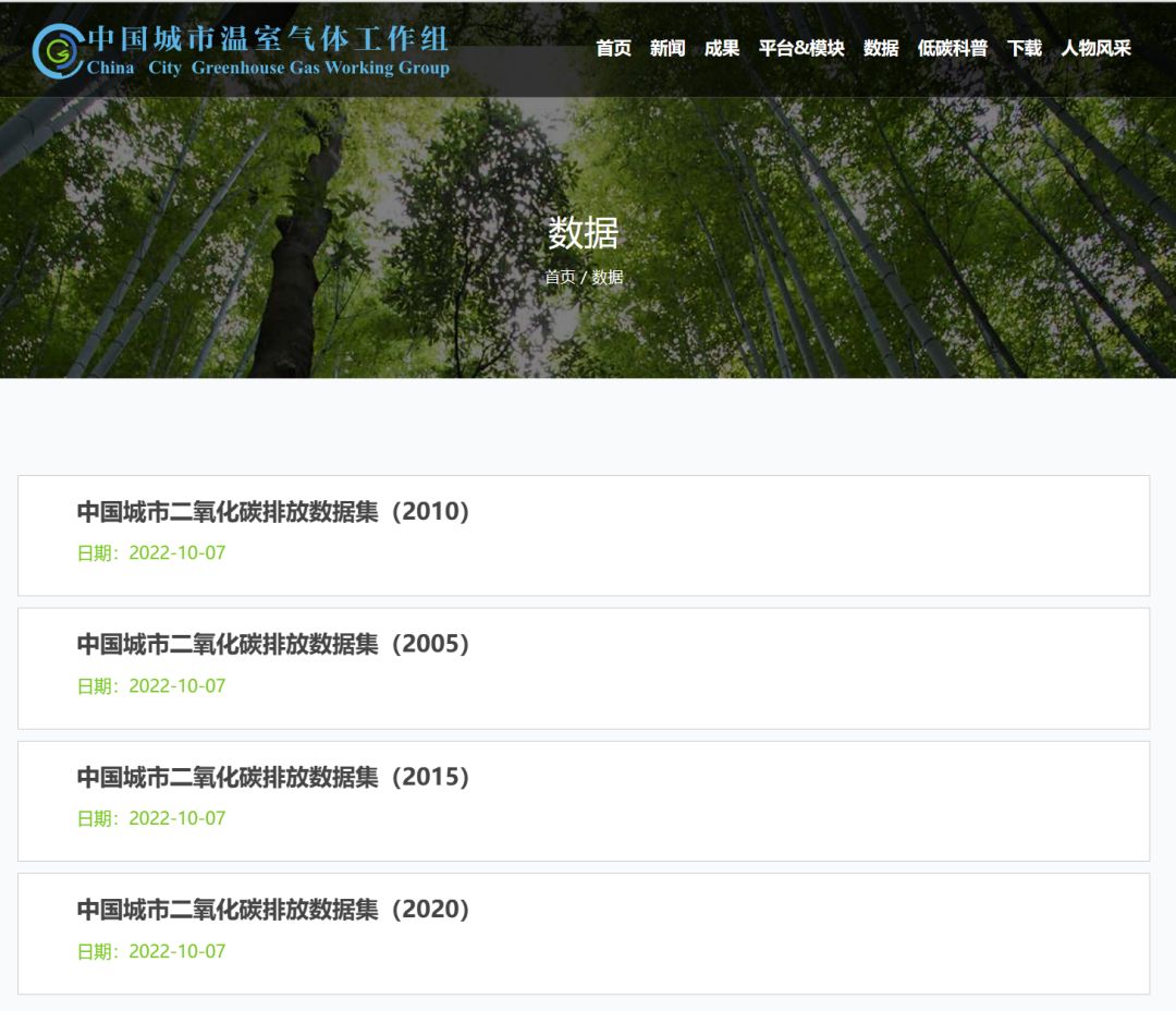 本次中国城市二氧化碳排放数据集来自于中国城市温室气体工作组(CCG)的官方网站,网址为:http://www.cityghg.com/toCauses?id=4,包括2005、2010、2015和2020年四个年份的数据,大家可以自己去该网站下载原始数据!