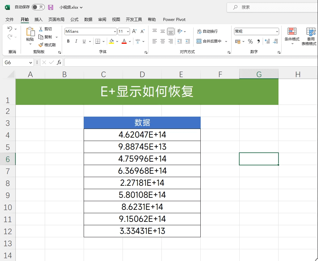 E+是科学计数法的显示方式,只需选中数据,然后按下Ctrl+1调出设置窗口,点击【自定义】在类型中输入一个0即可恢复。