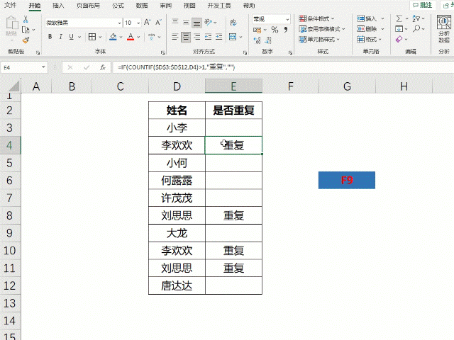 F9预览公式结果