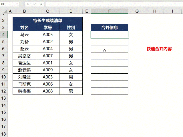 快速合并单元格内容
