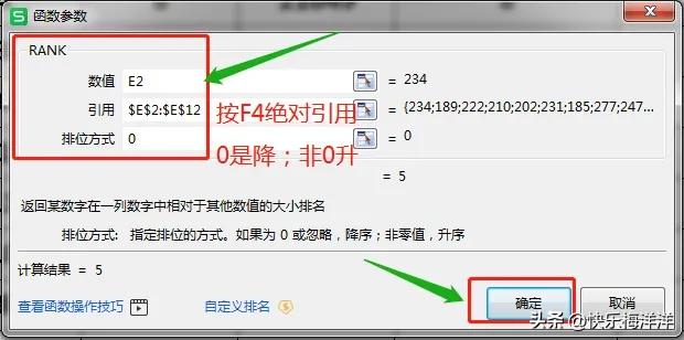 图1 RANK函数的参数