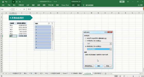 在行标签的数据项,【排序】【其他排序】,选择根据【销售额】降序从大到小排序,当数据源发生变化后,排序依旧根据销售额大小排序。