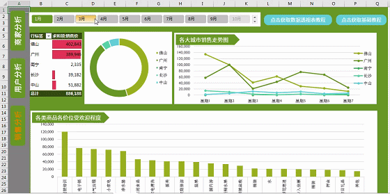 学完之后,我们可以用10分钟就能制作出下面的数据看板效果