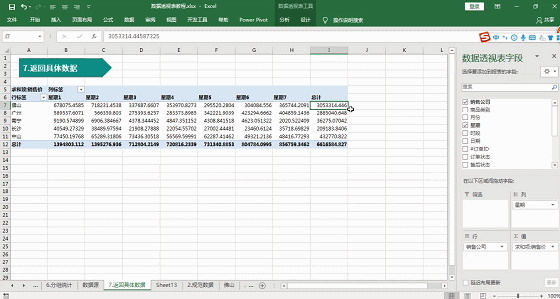 只需要在透视表统计的数值双击,就能返回对应的数值。