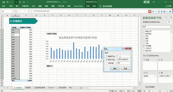 如果是数值或日期在行标签列,可以根据组合汇总进行自动的分组。【分析】【创建组合】根据步长和起点值、终点值设置。