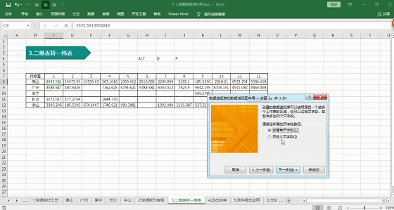 建立数据透视表后,双击最后汇总项,从而得到一维的数据源。
