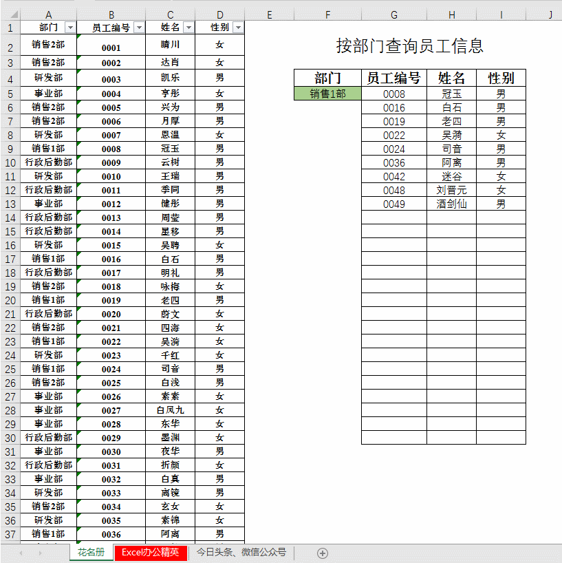 今天我们分享一个经典案例:通过部门名称调用该部门所有员工信息,来看个效果演示。